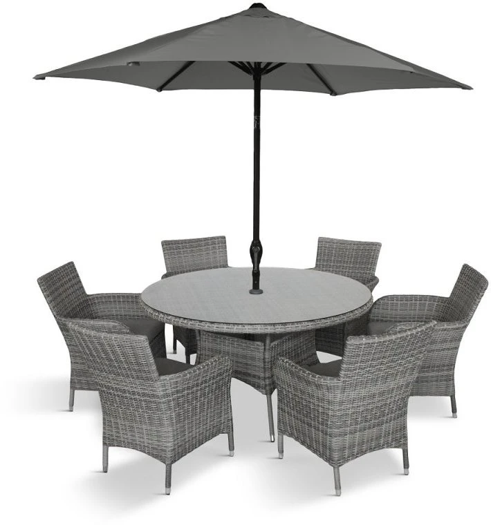 Monaco Stone 6 Seat Dining Set With 2.7m Parasol