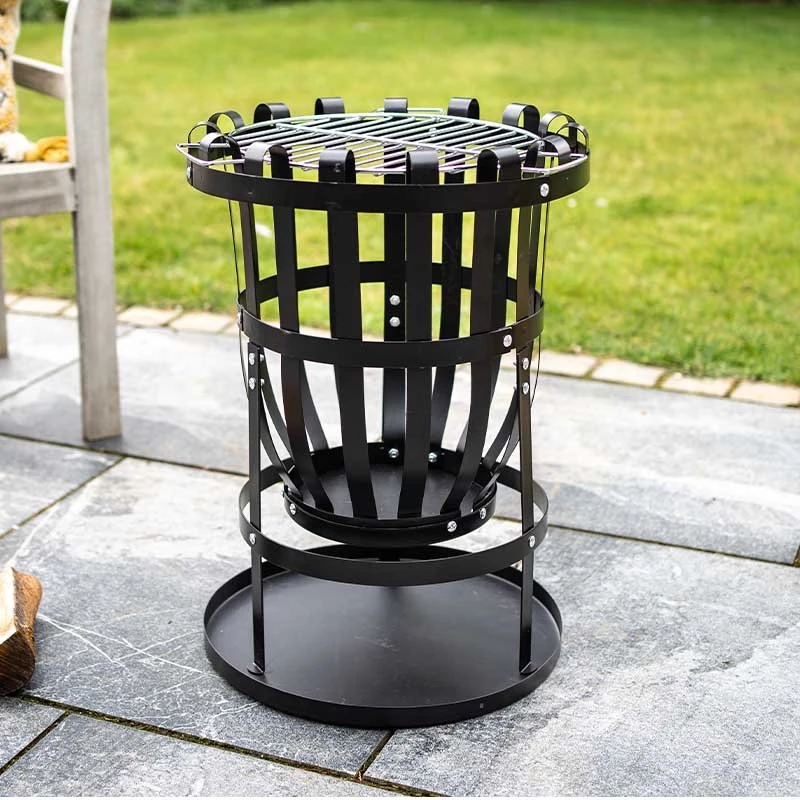 Keep the cold at bay with this traditional fire basket. 3 part welded steel with black high temperature resistant paint finish. Chrome plated grill for barbeque-style cooking. Ash tray makes light work of embers and debris. For use with untreated wood, small dry logs or wood briquettes. Use lumpwood charcoal when cooking on a fire basket. Quick self assembly. Full instructions included. Assembled dimensions: H56cm x W45cm x D45cm.