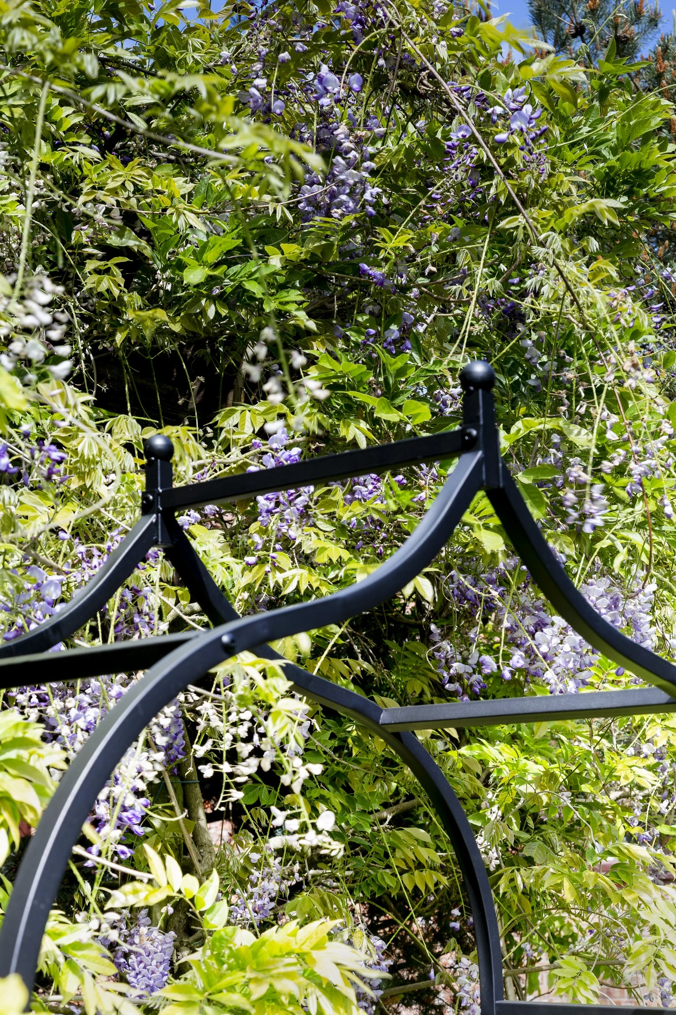 Decorative design with shaped top section. Sturdy square section steel with side supports to aid structural support. The perfect arch for roses clematis or any climbing plants.