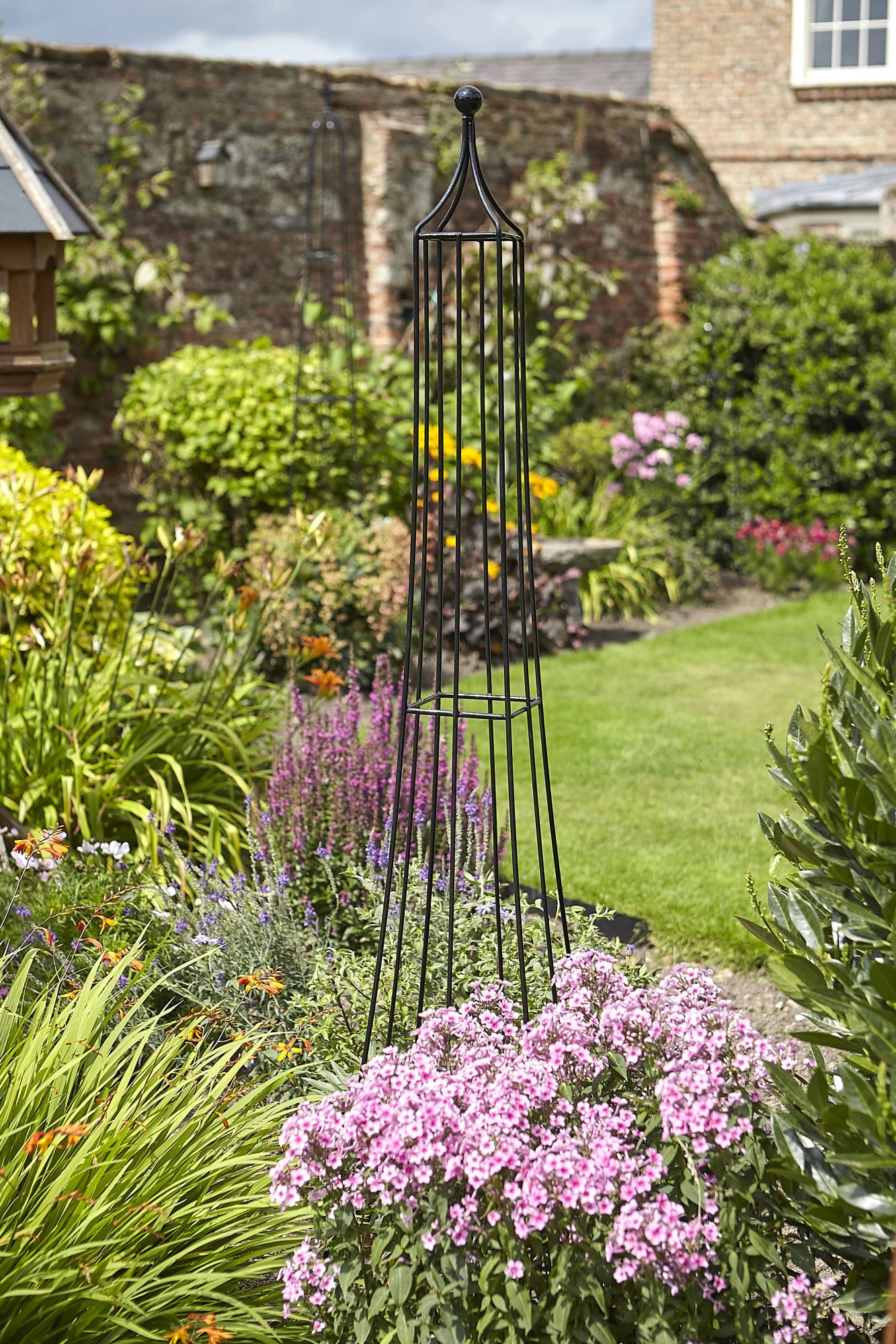 An uniquely shaped obelisk to add height and drama in a garden. Solid steel construction and weatherproof finish. A stunning focal point to any garden.