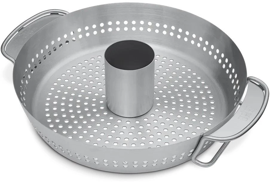 Not your run-of-the-mill poultry roaster. The versatile, 2-in-1 design of the Gourmet BBQ System Poultry Roaster empowers you to barbecue your bird and sides at the same time. Prepare a crispy yet moist chicken at the centre of your barbecue, while vegetables cook around the rim. Fill the centre liquid container to make a succulent roast chicken, or remove it to use the entire pan for cooking vegetables or sides.
